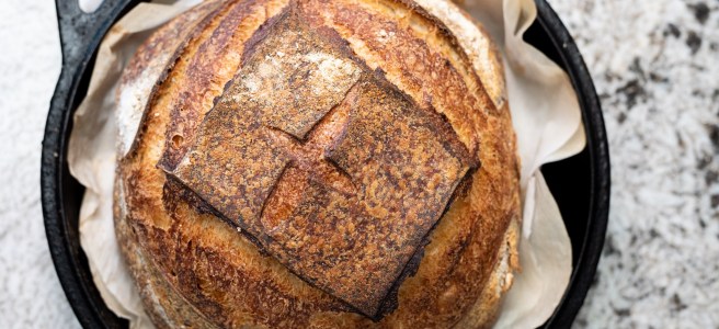 I was just strolling through Instagram, as I’ve been doing almost ad nauseam for the last week, and I saw something that caught my eye: a round, rustic loaf of bread posing on a cooling rack.